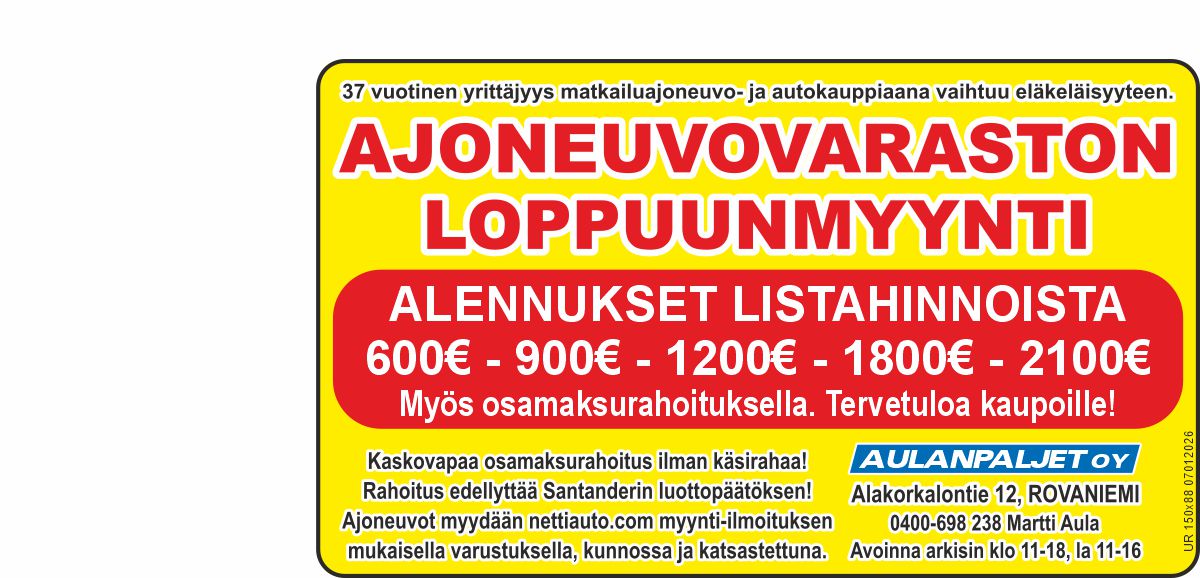 Peruskoko 200x250 cm (5 m²). Tilauksesta jopa 250x600 cm (15 m²)